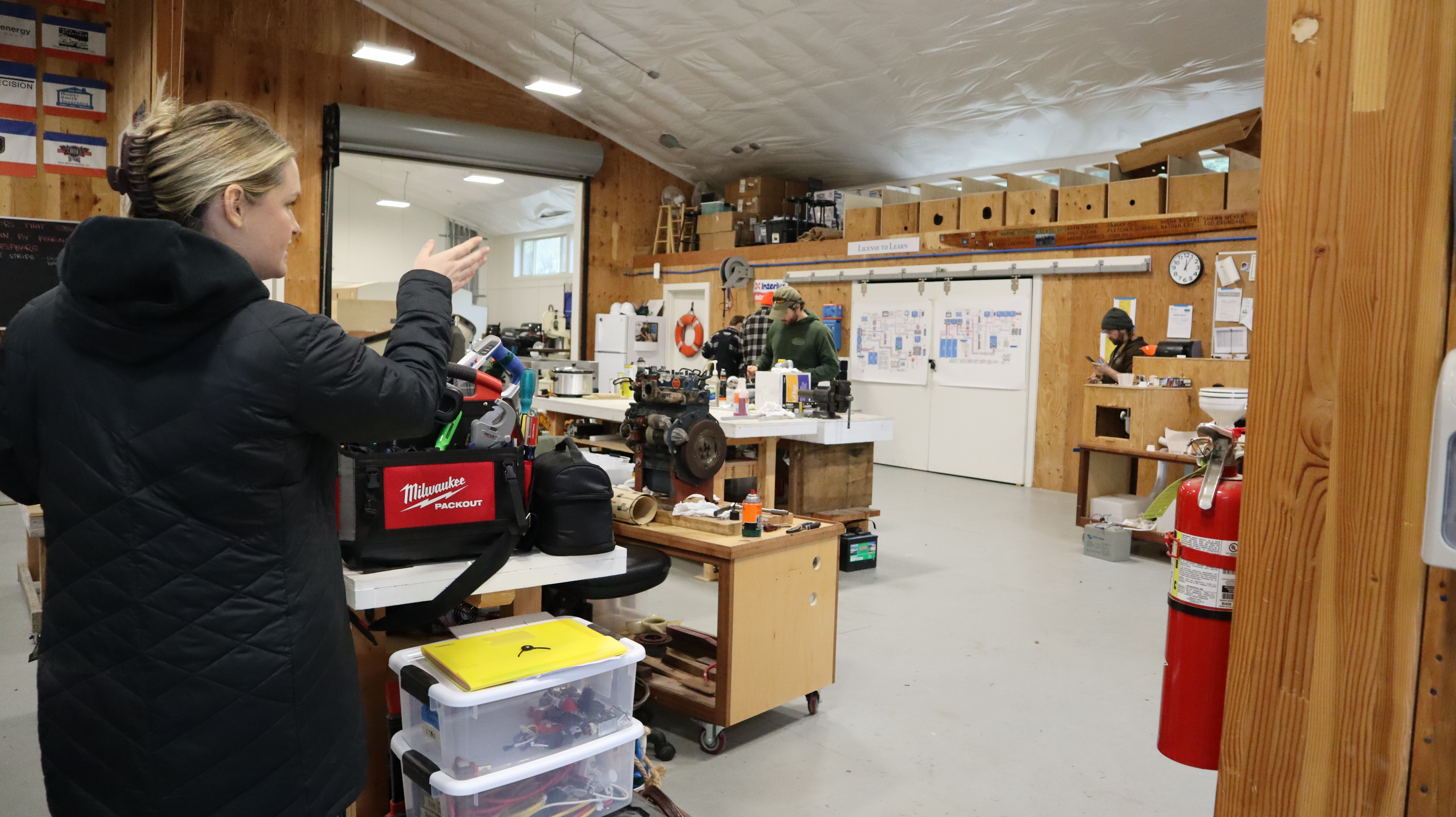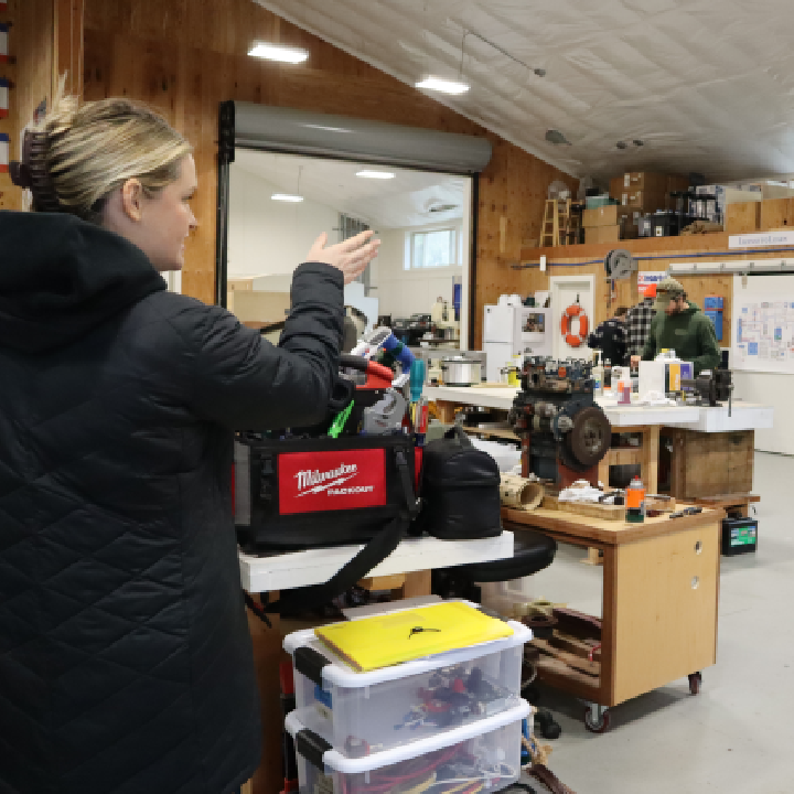 Christina lead a walkthrough of the marine systems workshop as part of a site visit for a Partner Profile.