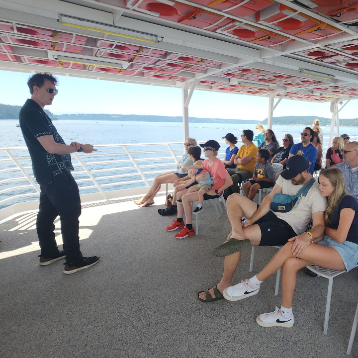 Chris Staundinger, owner of Pretty Gritty Tours, leads an on-the-water history tour for Family Day on the Foss.